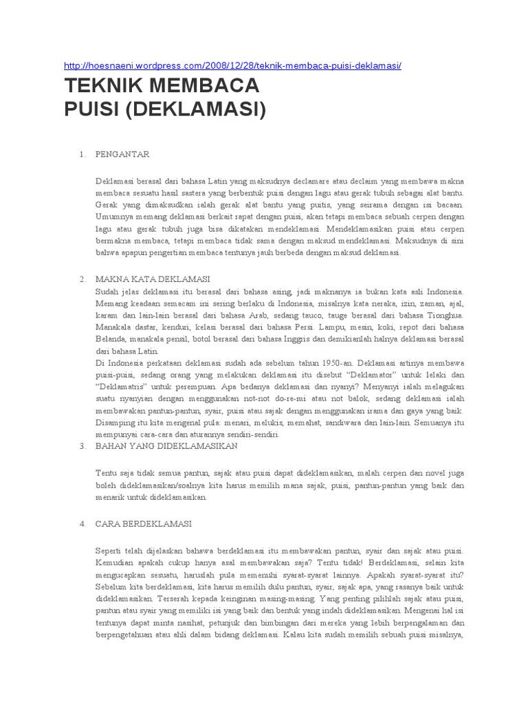 Puisi harus dibaca dengan penuh penjiwaan agar apa. Kehidupan yang misterius karena kita tak pernah tahu apa. Pembacaaan demikian disebut deklamasi. Apr 18 2016 Diperlukan tips-tips khusus agar orang lain yang mendengarkan memahami makna dari puisi yang dibacakan.