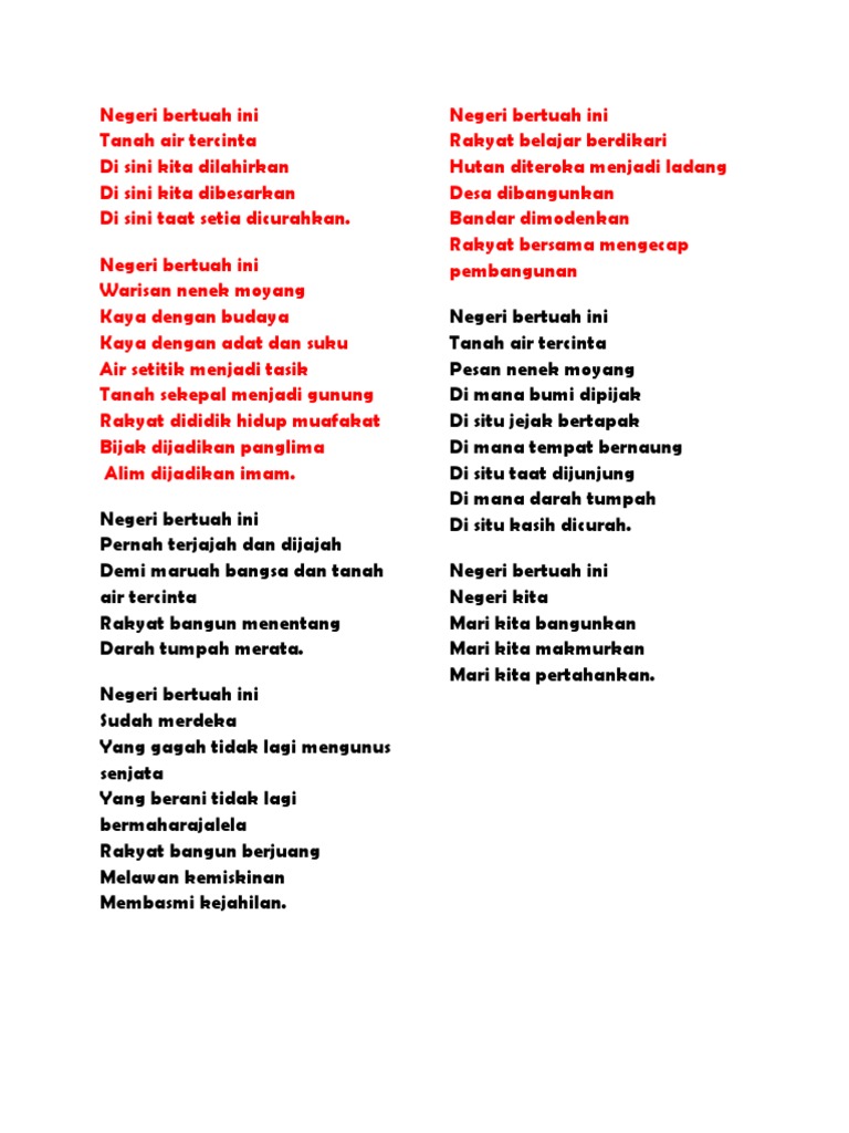 Oleh nenek moyang kita berbilang kaum budaya agama walau kita berbeza negara kita sama aliran darah kita juga sama merah warnanya.
