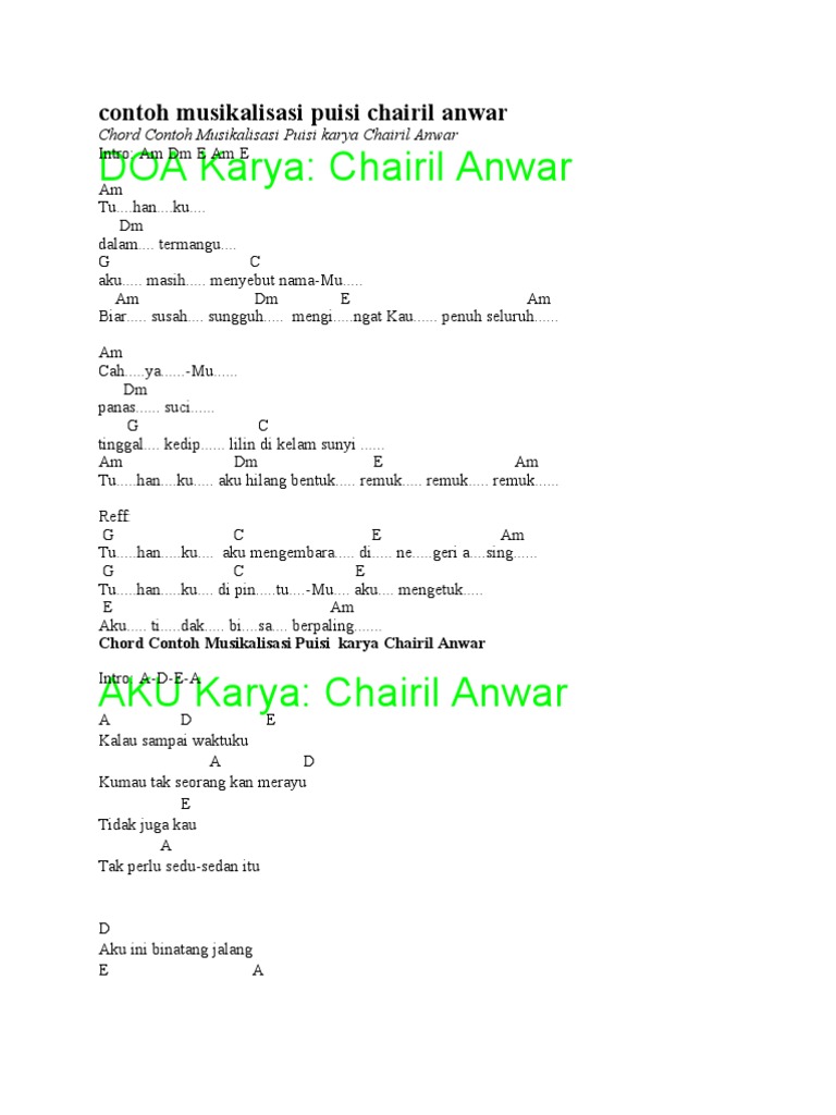 Dalam puisi ini sang penyair juga berusaha menegaskan bahwa jika tak menemukan solusi dalam permasalahan hidup tuhan selalu menjadi satu-satunya. Chairil lahir dan dibesarkan di medan sebelum pindah ke batavia sekarang jakarta dengan ibunya pada tahun 1940 dimana ia mulai menggeluti d. Berbeda dengan itu.