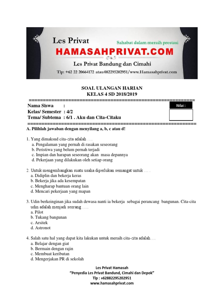 Soal Kelas 4 Tema 6 Subtema 1 Aku Dan Cita Citaku Pdf