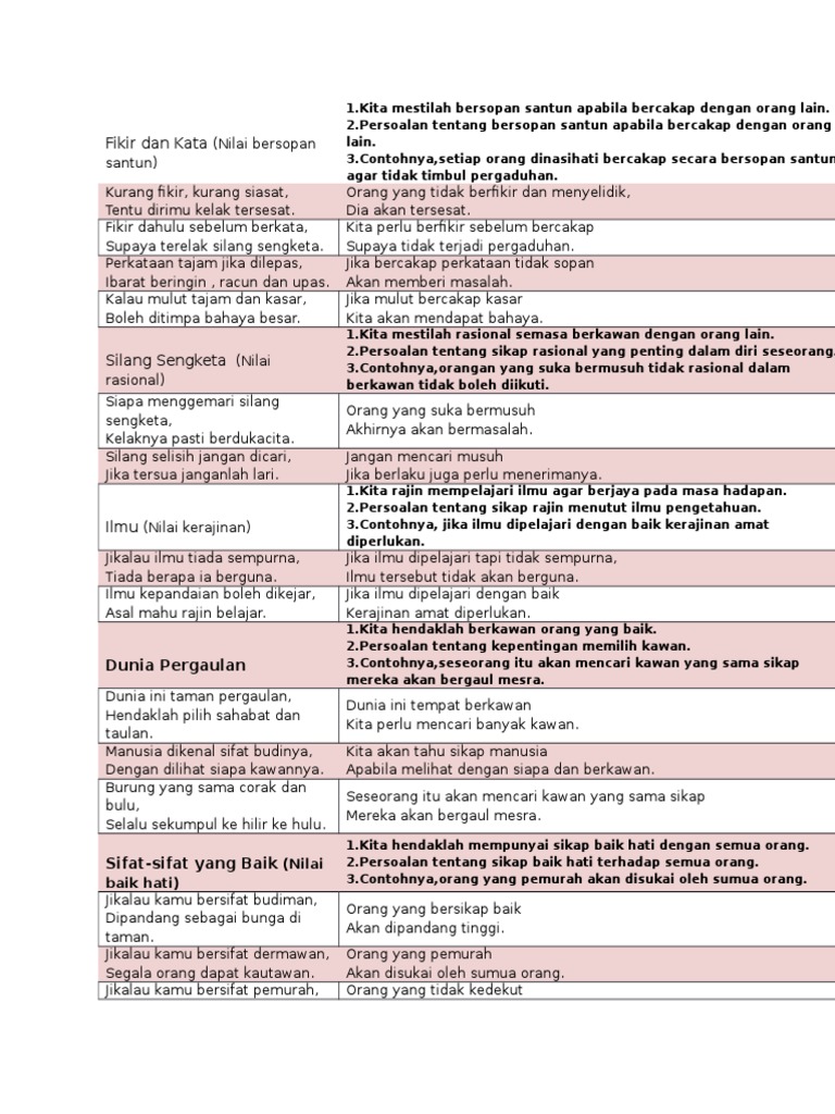 Nilai-nilai murni yang dapat dijadikan pegangan dalam kehidupan sehari-hari. Skop soalan kajian puisi tradisional ting 4 dan ting 5. Orang yang kurang berfikir dan belajar hidupnya akan tersasarmengakibatkan mereka salah langkah.
