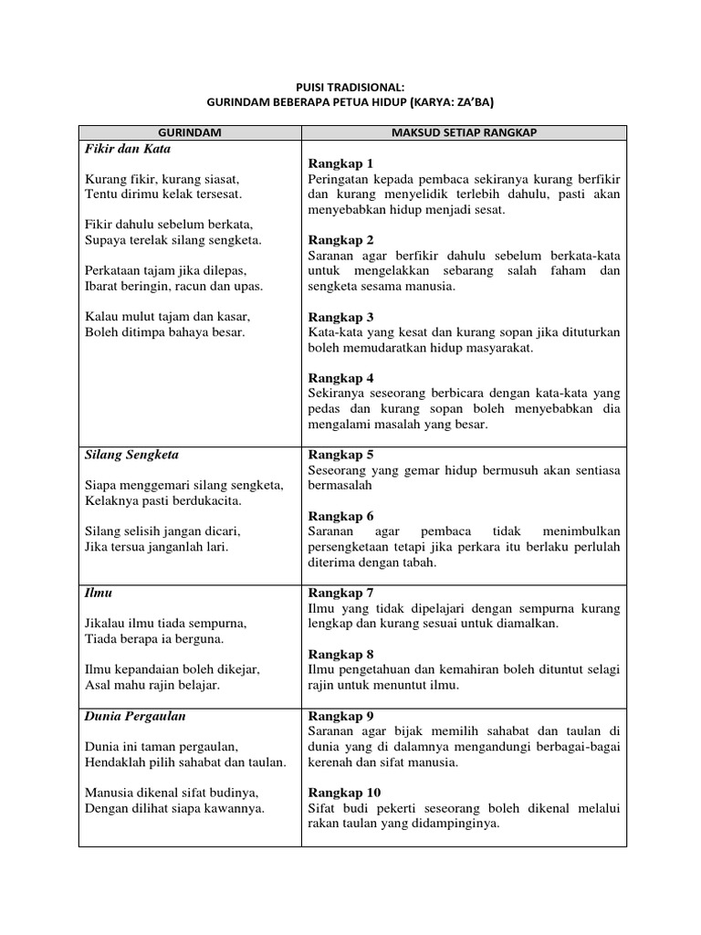 5 Sn Puisi Tradisional Beberapa Petua Hidup. Lihat Maksud Gurindam Tema Nilai Persoalan Gaya Bahasa Contoh Soalan dan banyak lagi. Gurindam dua belas fasal ketiga senarai antologi komsas tingkatan 5 antologi sejarah rindu 1.