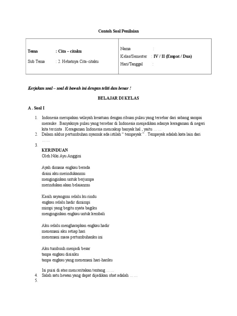 Sd Kelas 4 Tema 6 2 Hebatnya Cita Citaku Pembelajaran 3 Free Audiobuku Pendidikan
